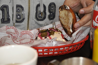 Wokół nas tłum, luźne rozmowy, przerywane zagłębieniem się w smakowite kąski hamburgerowych buł.