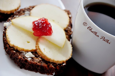 Jak nic pasuje do mojego dzisiejszego śniadania: czarnego chleba, na którym znalazł się plasterek słonego koziego sera – prosto z gór, przełamany słodką gruszką i keksem czereśniowej konfitury. Jest też czarna kawa posłodzona odrobiną trzcinowego cukru.